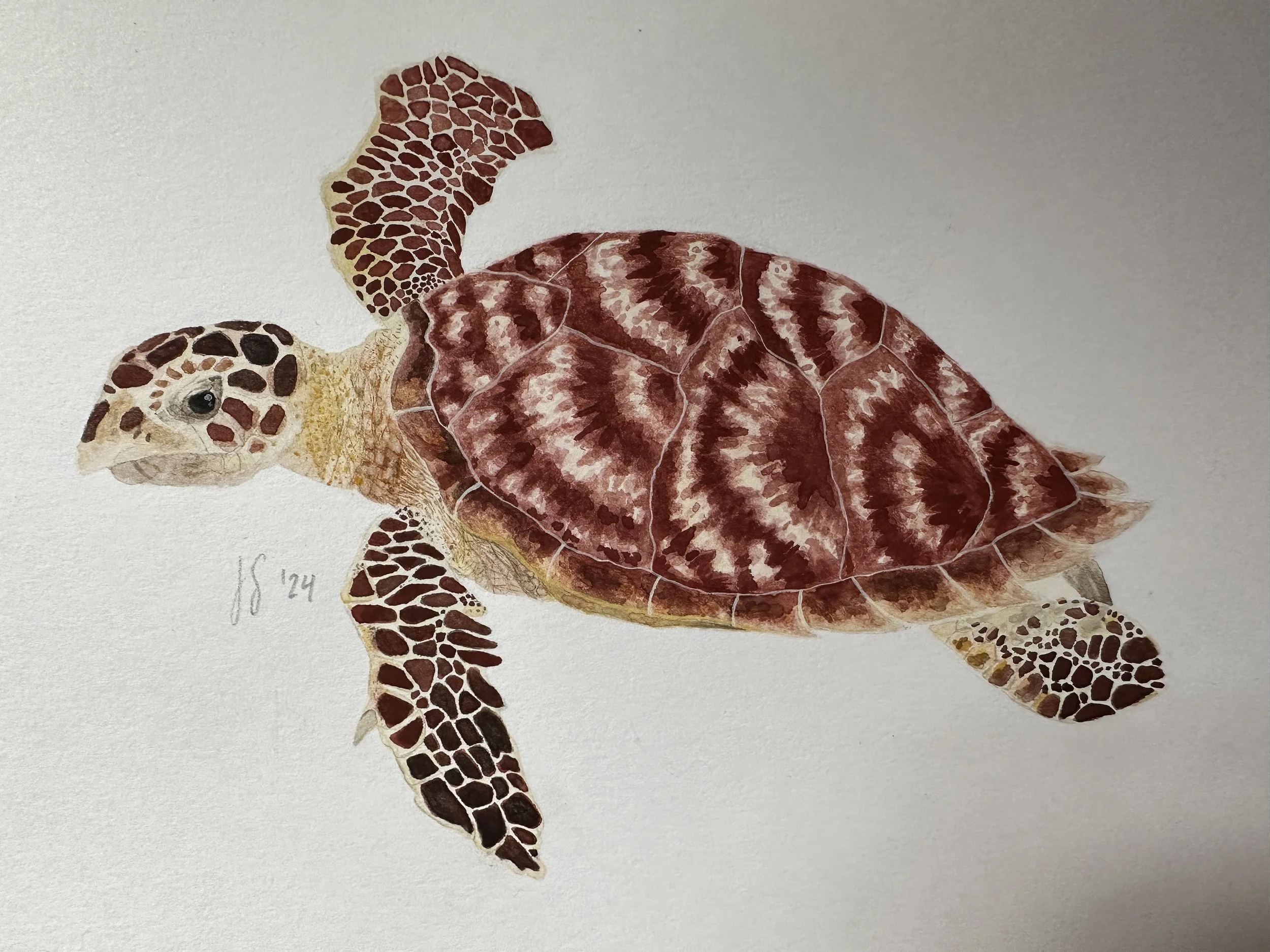 My medium is fine detail watercolor β wildlife and marine life rendered with a specificity my collectors describe as deep connection and presence.